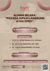 WEBINAR ALUMNI BICARA “PILKADA DIPILIH LANGSUNG ATAU DPRD” oleh Dani Ramadhan | 31 Juli 2025 Kirim Komentar Batalkan balasanAnda harus masuk untuk berkomentar.